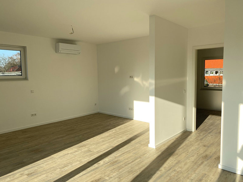 In unmittelbarer Nähe zu unserer ersten Stadtvilla entstanden in 11,5 Monaten Bauzeit sieben Wohnungen inkl. Carport- und Stellplatzanlage mit insgesamt ca. 599 m² Wohn- und Nutzfläche. Die 2,5 bis 4,5 Zimmerwohnungen (66 – 131 m²) haben allen einen Balkon bzw. Terrassen gen Süden sowie teilweise zusätzlich auch zum Westen. Hochwertige Ausstattung mit 3-fach verglasten Fenstern, elektrischen Rollläden, Wärmepumpe, Heizsystem inkl. Fußbodenheizung, moderne Bäder mit Walk-In-Dusche , Vinylböden, Aufzug mit Farbdisplay, Videosprechanlage, Abstellraum in den Wohnungen.
